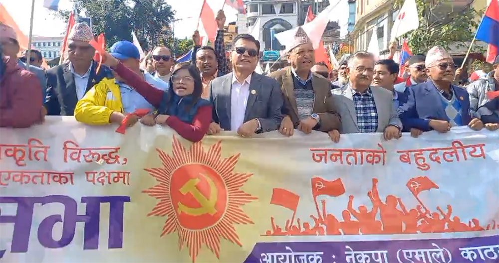 एमालेको र्याली शुरु, दरबारमार्गमा जागरण सभा हुदै
