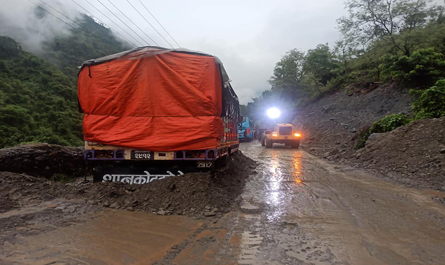 फिस्लिङ र मौवाखेलाको बीचमा पहिरो : मुग्लिन-मलेखु खण्ड अवरुद्ध