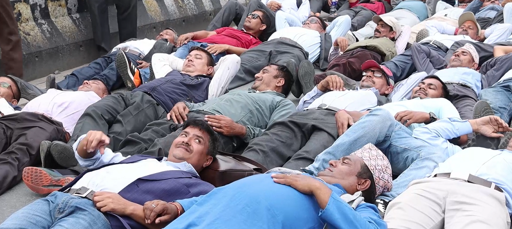 सडकमै सुतेर बिरोध : राहत शिक्षकहरुले सडकमै सुतेर बिरोध जनाए