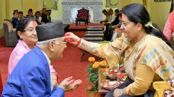 एमाले अध्यक्ष ओलीले राष्ट्रपतिको हातबाट टीका लगाए