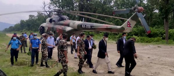 प्रधानमन्त्री देउवासहित गठबन्धनका शीर्ष नेताहरुद्वारा निजगढ विमानस्थलको निरीक्षण।