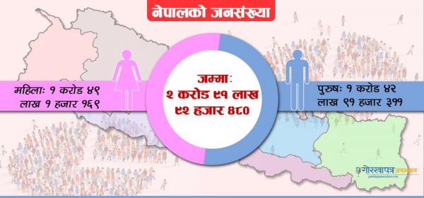 नेपालको जनसंख्या दुई करोड ९१ लाख, महिलाको जनसंख्या छ लाखले बढी