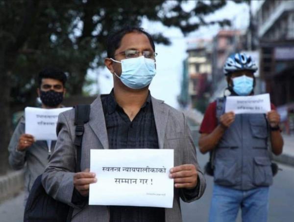 काठमाडौंमा प्रधानन्यायाधीशकाे राजिनामा माग गर्दै विवेकशील साझाको प्रर्दशन