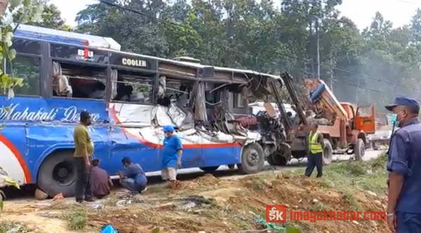 नवलपुरको गैडाकोटमा बस र ट्रक ठोक्किँदा तीन जनाको मृत्यु, २४ घाइते