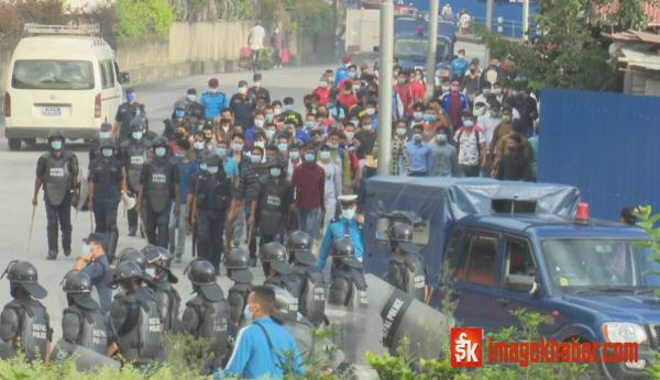 बैदेशिक रोजगारीमा जाने युवाहरुले कोरोना खोप लगाउन नपाएको भन्दै काठमाडौंमा प्रदर्शन गरे