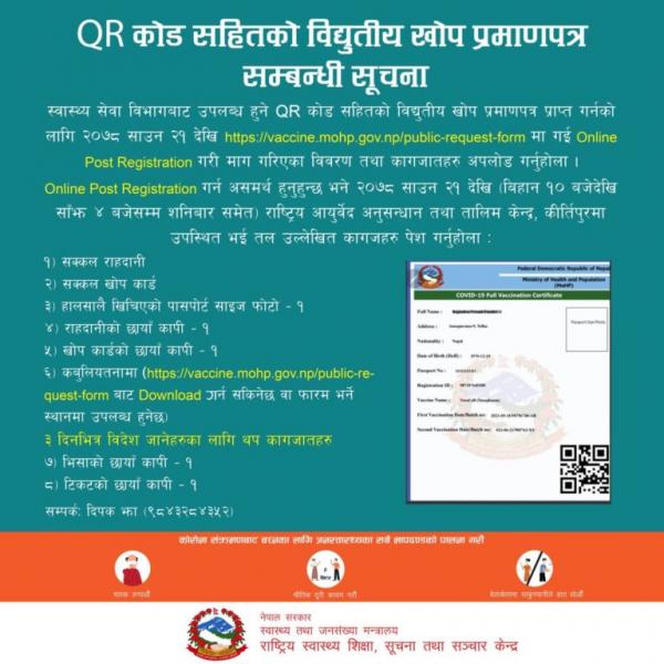 कोरोना खोप लगाएकालाई आजदेखि क्यूआर कोडसहितको विद्युतीय खोप प्रमाणपत्र वितरण