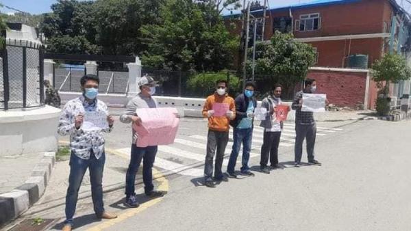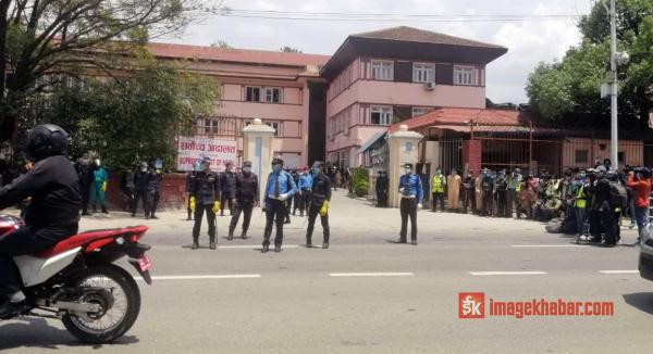 राष्ट्रपति कार्यालय अगाडि प्रतिनिधि सभा विघटन खारेज गर्न माग गर्दै नेविसंघको प्रदर्शन