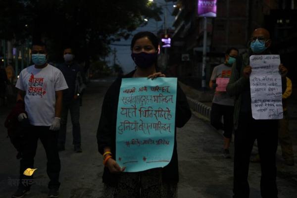 काठमाडौँको माइतीघर मण्डलामा मोबाइलको लाइट बालेर सरकारविरुद्ध प्रदर्शन
