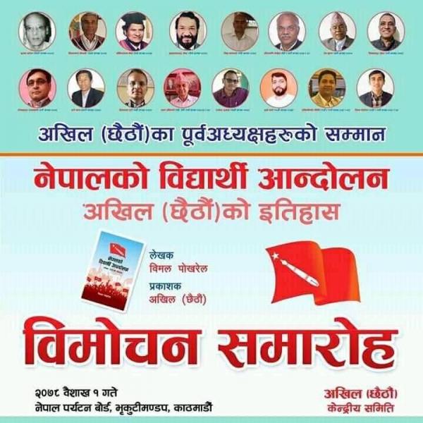 पुर्व अध्यक्षहरुलाई सम्मान तथा अखिल छैठौंका अध्यक्ष पाेखरेलद्वारा लिखित पुस्तक बिमाेचन हुने