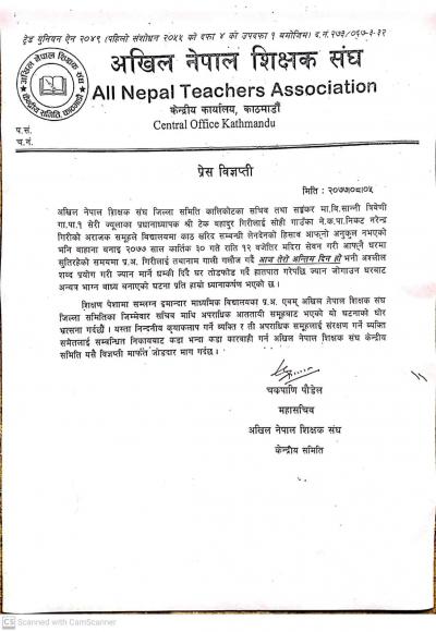 कालीकोटमा शिक्षकमाथि हातपात तथा ज्यान मार्ने धम्की, कारबाही गर्न अखिल नेपाल शिक्षक संघको माग