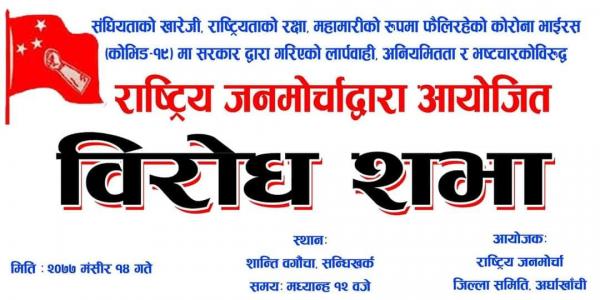 राष्ट्रिय जनमाेर्चाले देशव्यापी रुपमा मंसिर १४ गते संघियता बिरुद्ध बिराेध सभा गर्ने