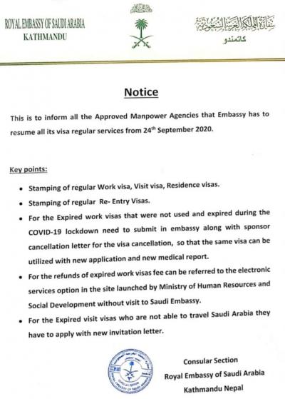 साउदी अरबले पर्सी बिहीबारदेखि श्रम लगायत सबै भिसा दिन सुरु गर्ने