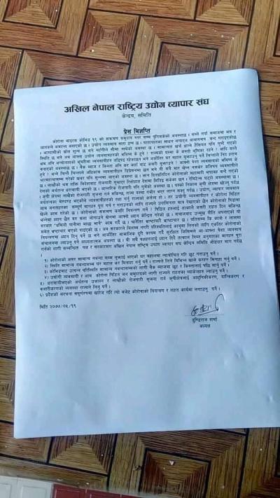 मसाल निकट उद्योग व्यापार संघद्धारा व्यवसाय धरासायी हुन नदिन ७ बुँदे ध्यानाकर्षण