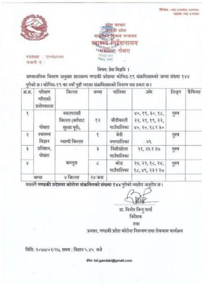 नेपालमा कोरोना भाइरस संक्रमितहरुको संख्या २,६३४, मृतकको संख्या १०, डिस्चार्ज २९० जना