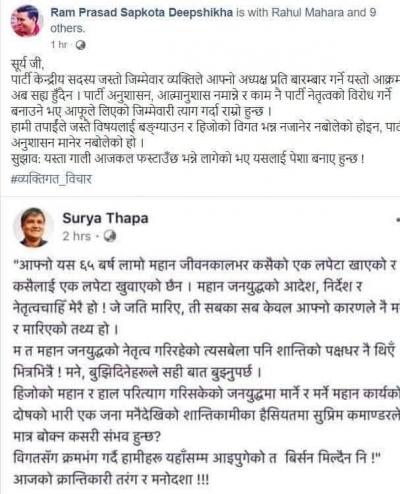 प्यूठानबाट नेता थापालाई विद्यार्थी नेताहरुको चेतावनी
