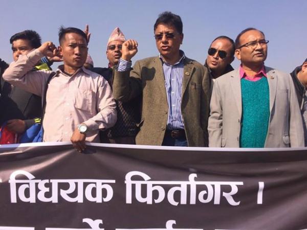 ५ नम्बर प्रदेश टुक्र्याएको विरोधमा एमालेका सांसद राजधानीका सडकमा