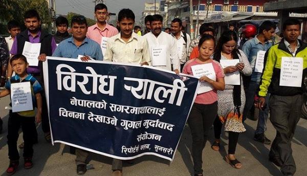 गुगलले सगरमाथालाई चीनतर्फ पारेको भन्दै सुनसरीको इटहरीमा विरोध प्रर्दशन