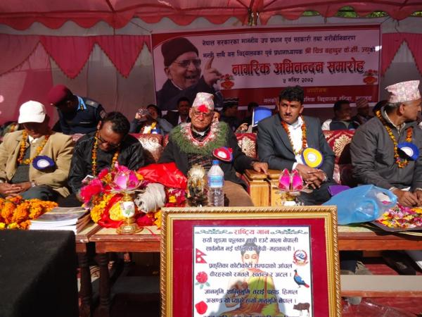 उपप्रधानमन्त्री चित्रबहादुर केसीलाई गृहजिल्ला बागलुङमा अभिनन्दन