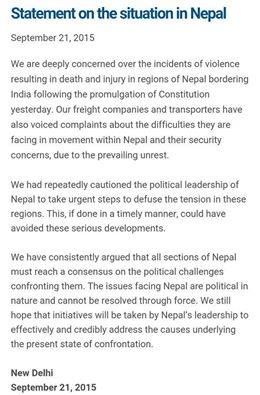 भारतद्धारा नयाँ संविधानमा आफ्ना चित्त नबुझेका विषयलाई सूचीकृत गर्दै नेपालका प्रमुख दलहरुलाई सुधारका लागि दबाब
