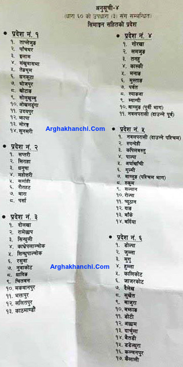 दलहरुबीच भएको सहमति अनुसार प्रदेशको सीमाकंन यस्तो