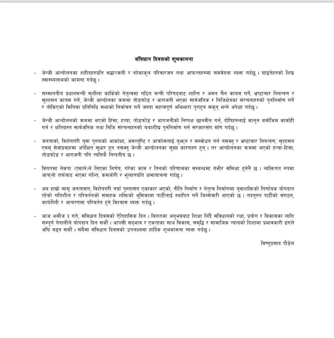 संबिधान नेपाली जनताको भाग्य मार्गदर्शन गर्ने दस्तावेज हो- प्रधानमन्त्री कार्की