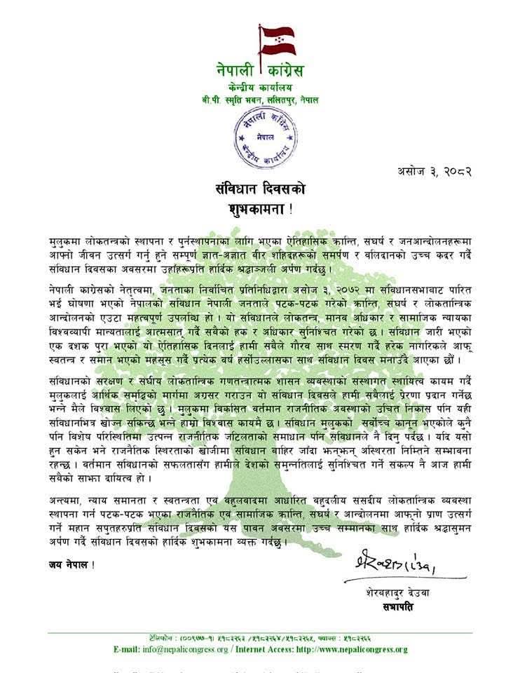 देउवाले भने, `राजनीतिक निकास यही संबिधानवाट खोज्न सकिन्छ´