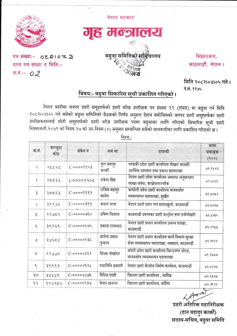 नेपाल प्रहरीका एसएसपी, एसपी र डीएसपी बढुवा सिफारिस