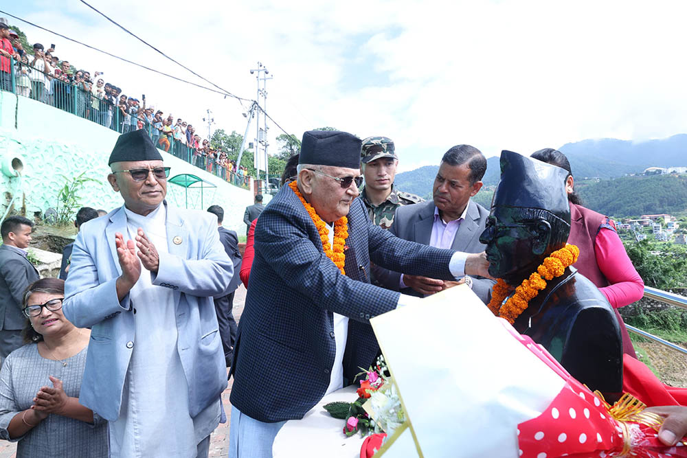 प्रधानमन्त्री ओलीद्वारा मनमोहनको अर्धकदको शालिक अनावरण