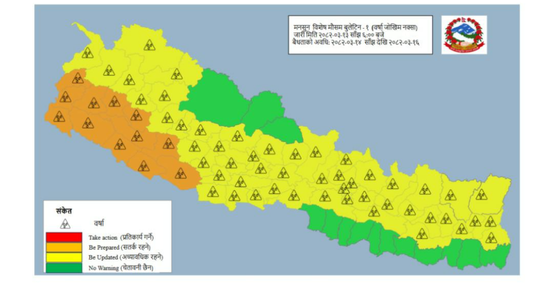 नेपालतर्फ नजिकिँदै मनसुनी रेखा, भीषण वर्षाको सम्भावना