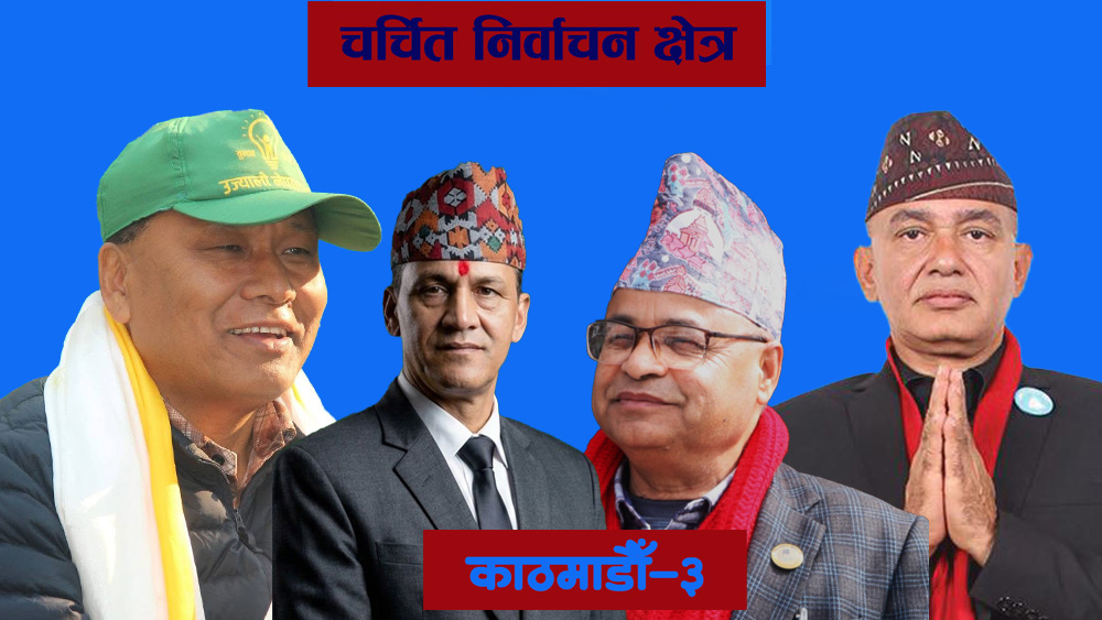 काठमाडौँ । फागुन २१ गते हुने प्रतिनिधि सभाको निर्वाचनमा सबै भन्दा बढी चर्चामा रहेको क्षेत्र मध्ये एक काठमाडौँ- ३ पनि रहेको छ । उज्यालो नेपाल पार्टीका अध्यक्ष कुलमान घिसिङले यस क्षेत्रबाट उम्मेदवार बनेका कारण यस क्षेत्रको चर्चा रहेको छ...
