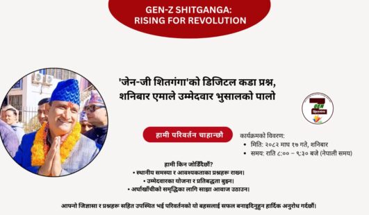 'जेन-जी शितगंगा'को डिजिटल कडा प्रश्न, शनिबार एमाले उम्मेदवार भुसालको पालो अर्घाखाँची - परम्परागत चुनावी सभा र भाषणको शैलीलाई चुनौती दिँदै अर्घाखाँचीका युवाहरूले 'डिजिटल' माध्यमबाट उम्मेदवारहरूलाई जबाफदेही बनाउने नवीन अभियान सुरु गरेका छन्। 'जेन-जी शितगंगा' (Gen-Z Shitganga) नामक युवा समूहले...